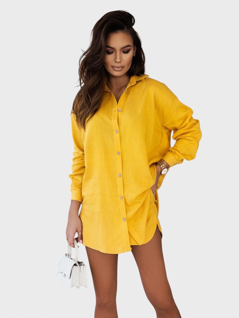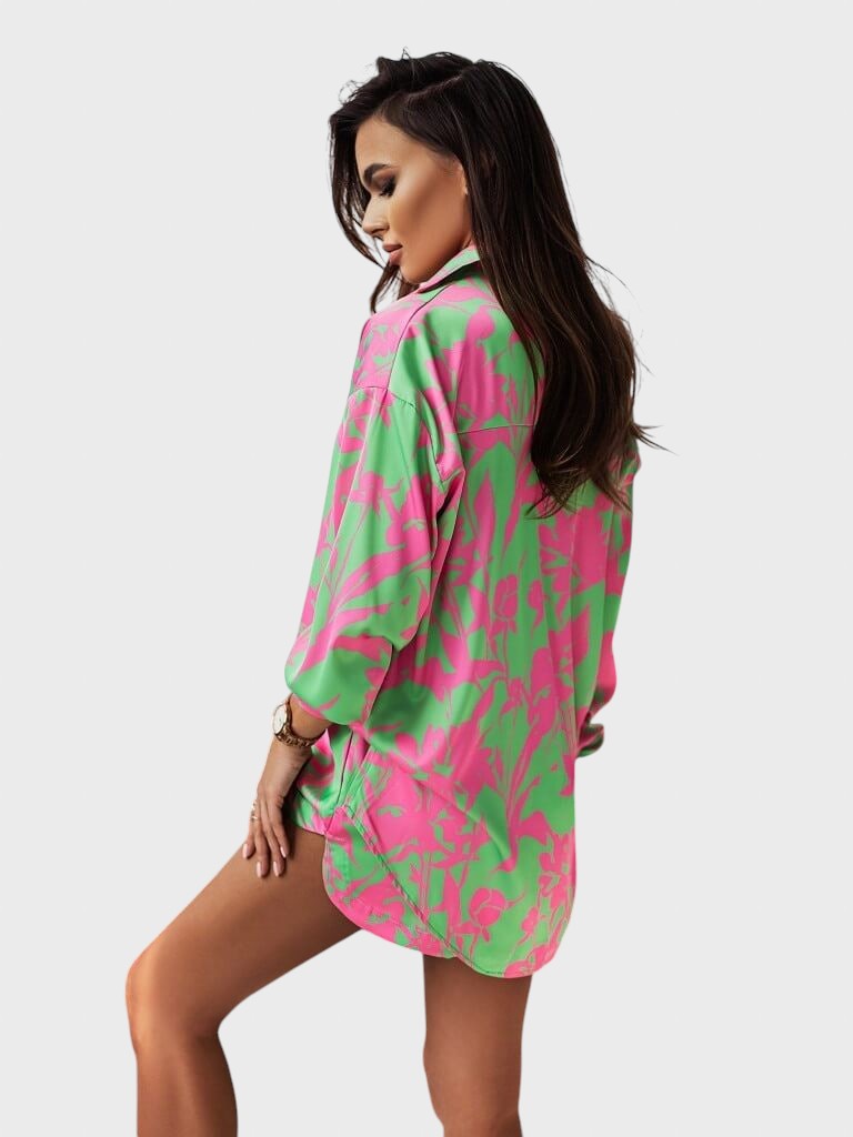 • Елегантност без усилие: Свръхразмерната кройка и струящата се материя на ризата създават непринудена елегантност. Това е стил, който излъчва увереност и изтънченост в курортен стил, без сковаността и сковаността на официалното облекло.