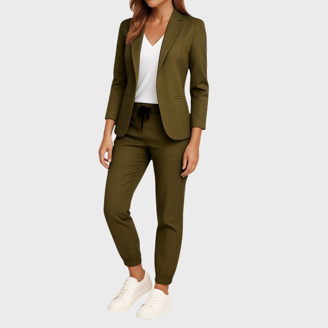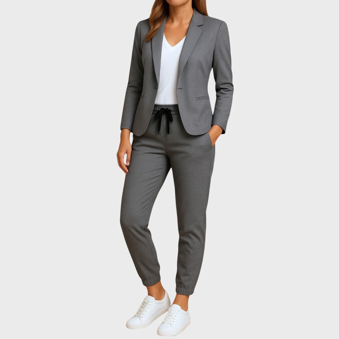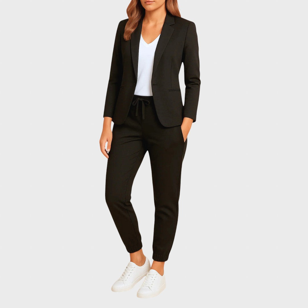 • Универсална елегантност: Носете го като цялостен комплект за мощна визия или комбинирайте отделните елементи за безкрайни визии. Идеален за официални срещи или небрежни срещи за кафе.