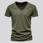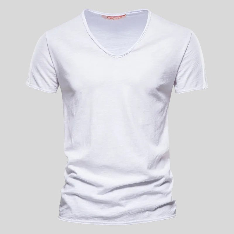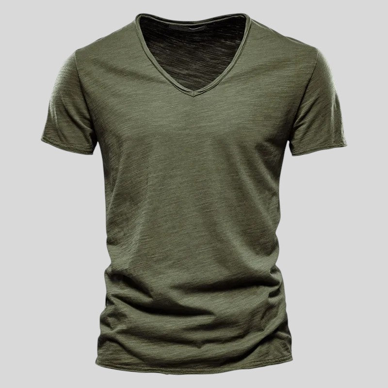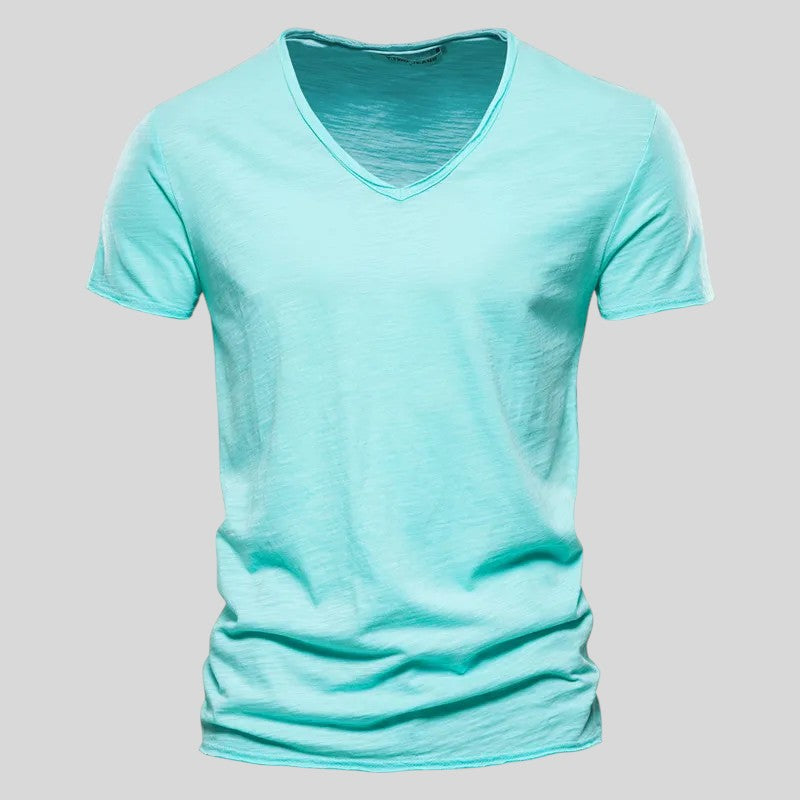 • V-образно деколте: Тази кройка е особено ласкателна, помага за визуално удължаване на врата и силуета, което я прави идеална за небрежна, но елегантна визия.