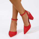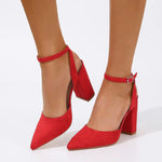 Тези обувки на висок ток съчетават класическа, женствена форма с модерен, здрав дизайн . Изисканият им стил е подчертан от кадифената текстура на материала и съвременната форма на тока.