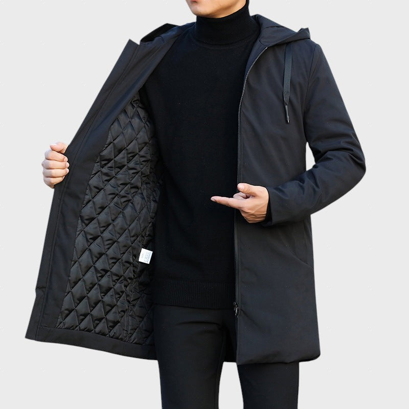 • Стилно и модерно: Силуетът със средна дължина и качулка придава на визията ви градски и модерен щрих.