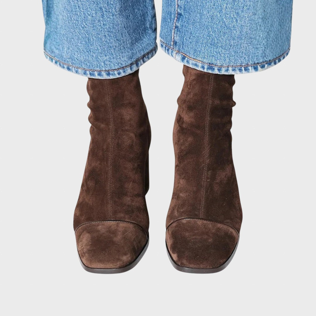 • Дизайн: Силуетът, прилепващ към глезена, комбиниран с леко квадратния връх, напомня за ретро естетика от 60-те или 70-те години, но е умело актуализиран за днес.